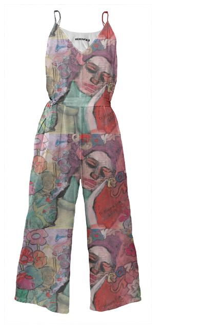 Wide leg jumpsuit with adjustable spaghetti straps invisible side seam zipper and a tie belt.