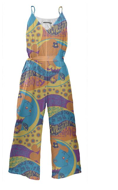 Wide leg jumpsuit with adjustable spaghetti straps invisible side seam zipper and a tie belt.