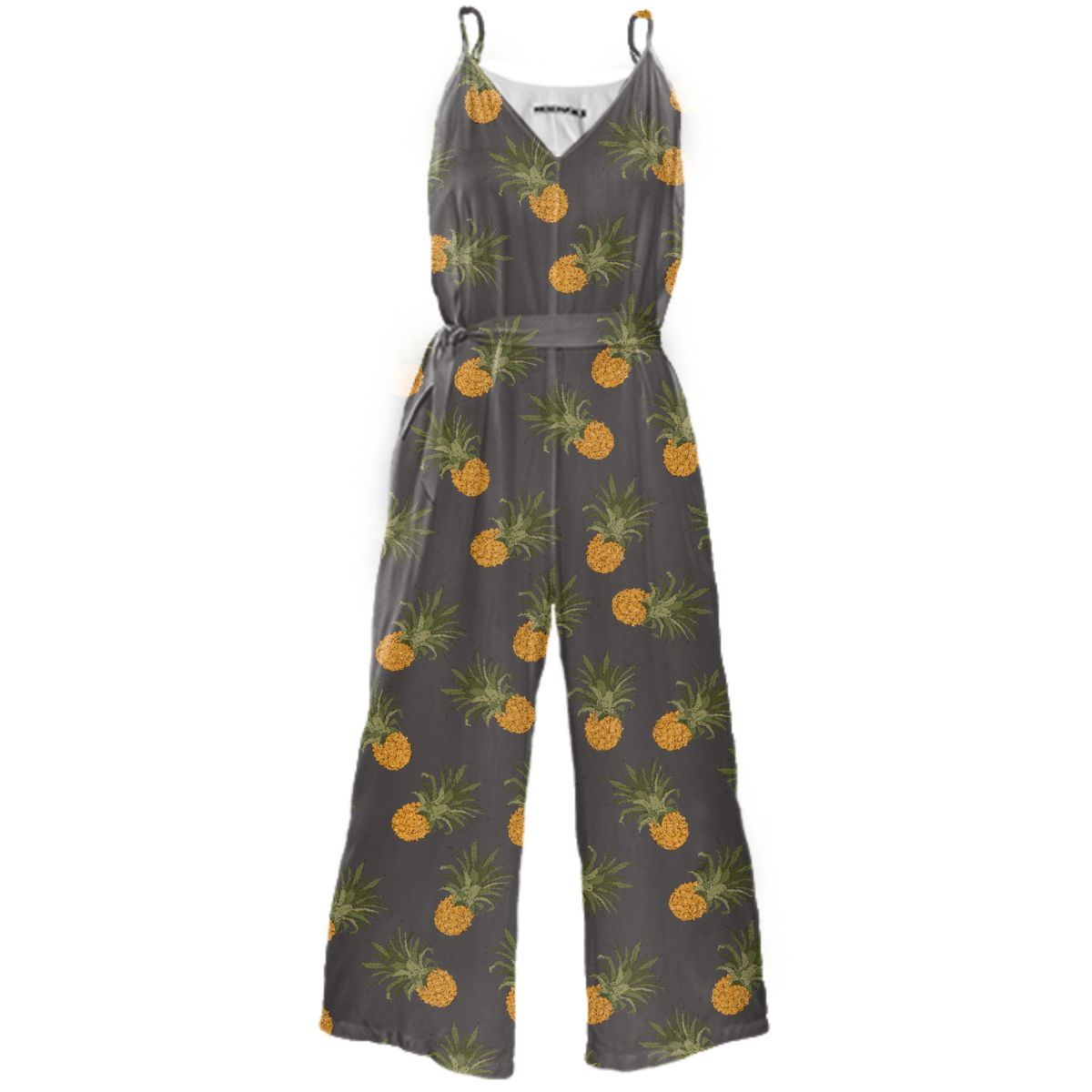 Wide leg jumpsuit with adjustable spaghetti straps invisible side seam zipper and a tie belt.