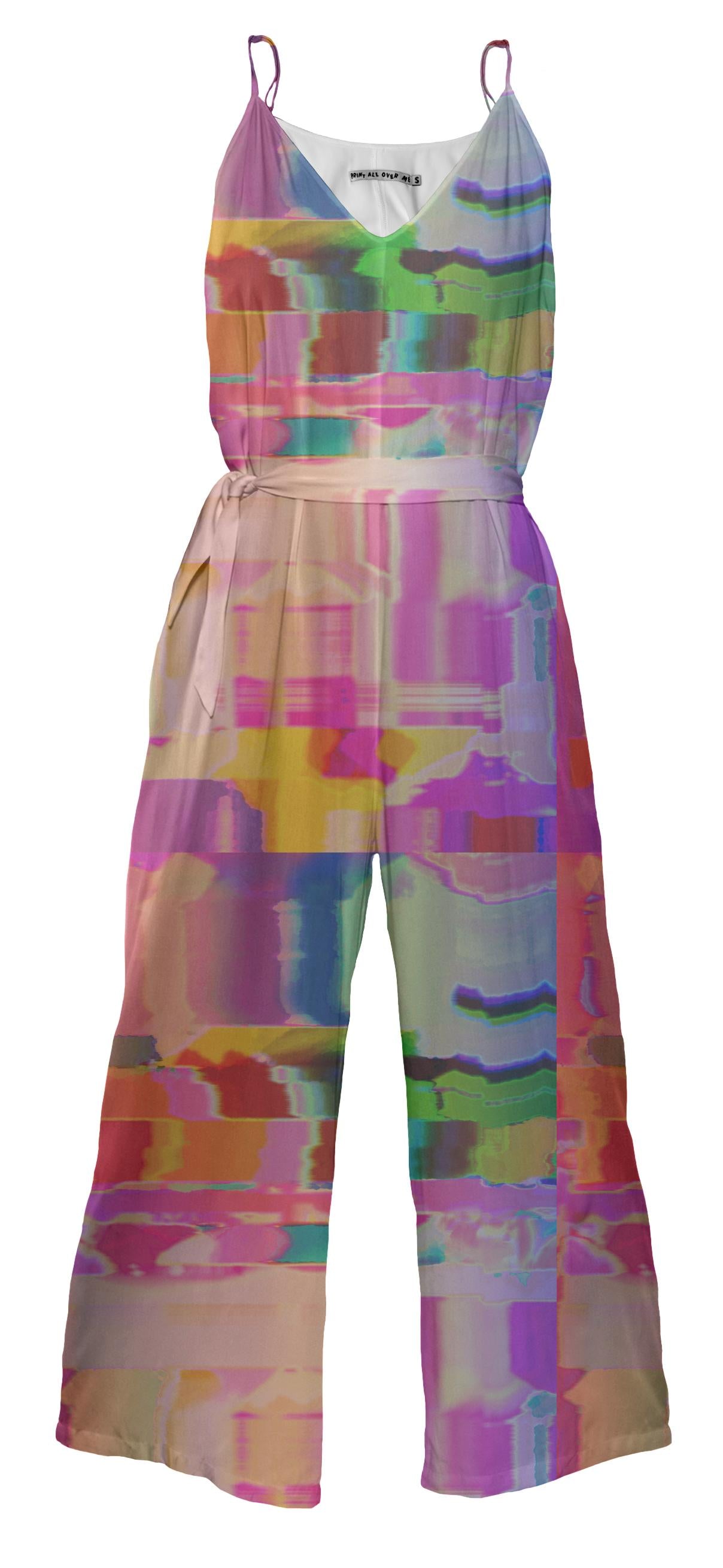 Wide leg jumpsuit with adjustable spaghetti straps invisible side seam zipper and a tie belt.