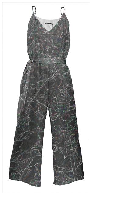 Wide leg jumpsuit with adjustable spaghetti straps invisible side seam zipper and a tie belt.