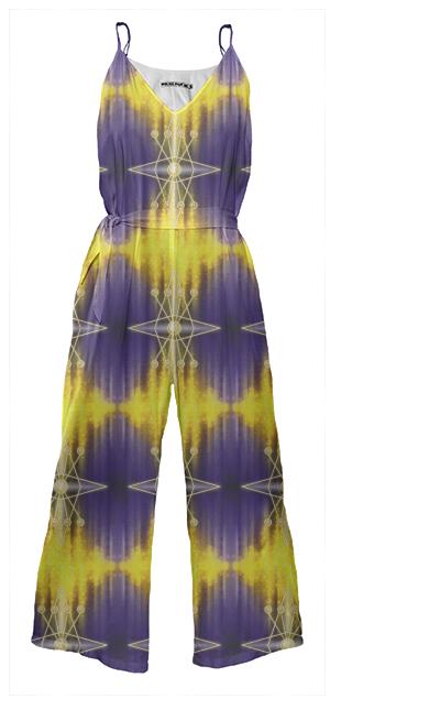 Wide leg jumpsuit with adjustable spaghetti straps invisible side seam zipper and a tie belt.