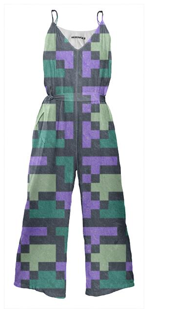Wide leg jumpsuit with adjustable spaghetti straps invisible side seam zipper and a tie belt.