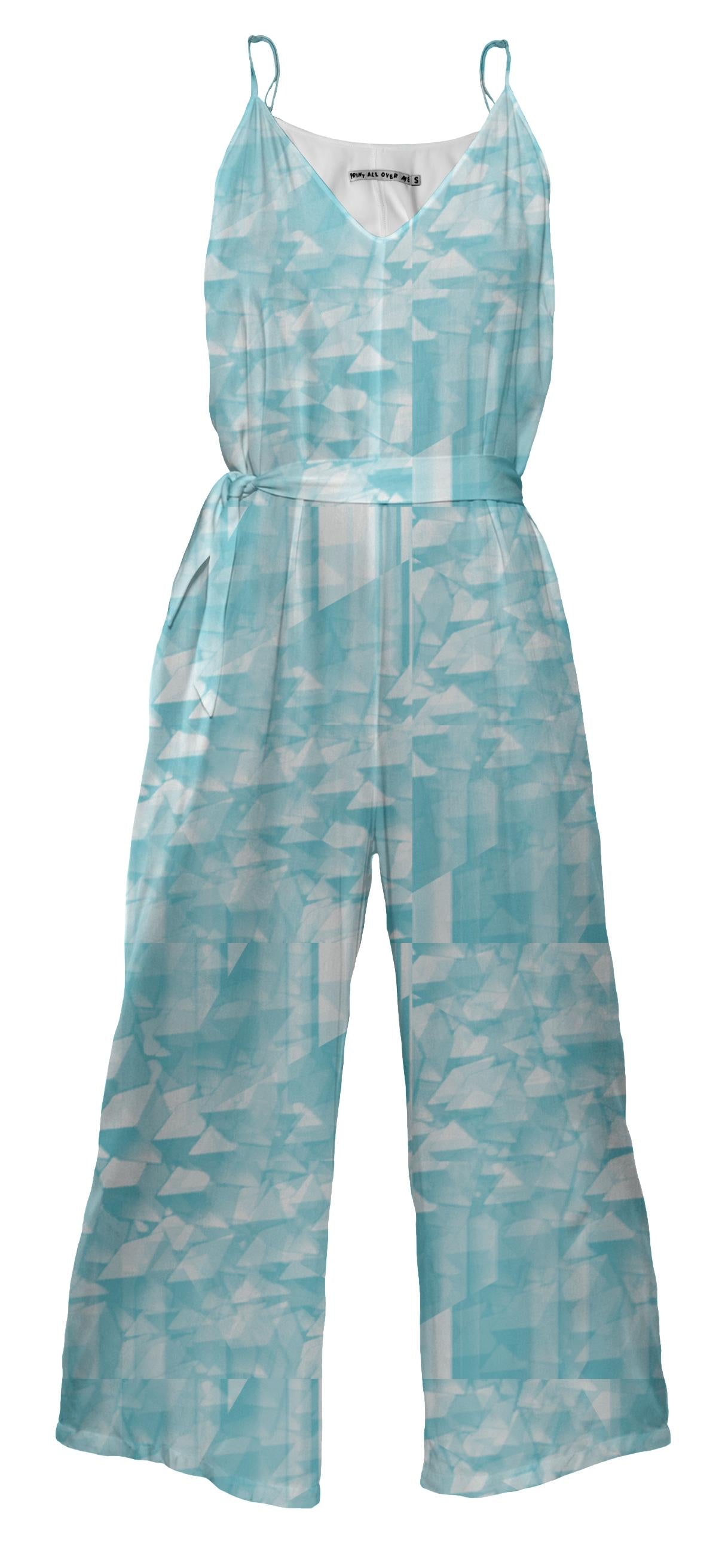 Wide leg jumpsuit with adjustable spaghetti straps invisible side seam zipper and a tie belt.