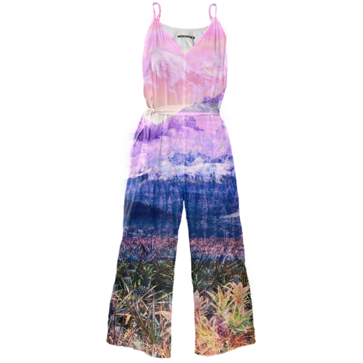 Wide leg jumpsuit with adjustable spaghetti straps invisible side seam zipper and a tie belt.