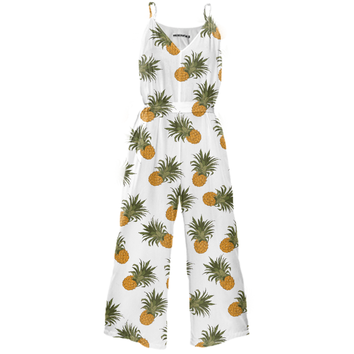Wide leg jumpsuit with adjustable spaghetti straps invisible side seam zipper and a tie belt.
