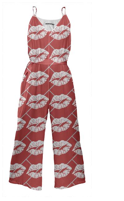 Wide leg jumpsuit with adjustable spaghetti straps invisible side seam zipper and a tie belt.