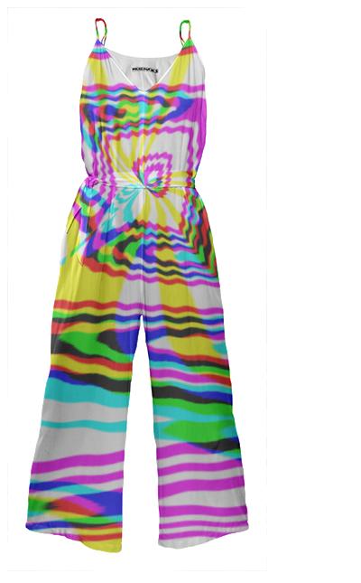Wide leg jumpsuit with adjustable spaghetti straps invisible side seam zipper and a tie belt.