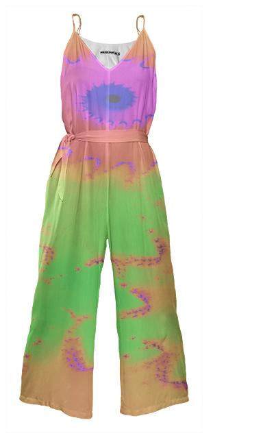 Wide leg jumpsuit with adjustable spaghetti straps invisible side seam zipper and a tie belt.