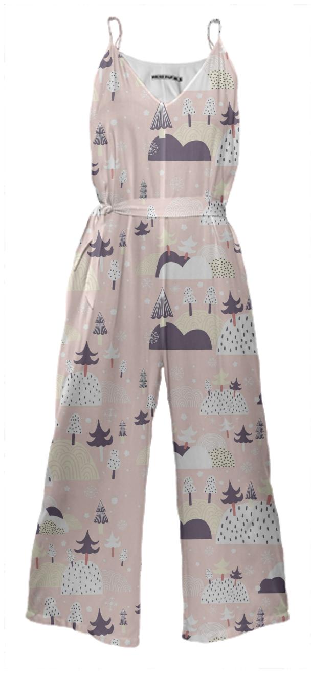 Wide leg jumpsuit with adjustable spaghetti straps invisible side seam zipper and a tie belt.
