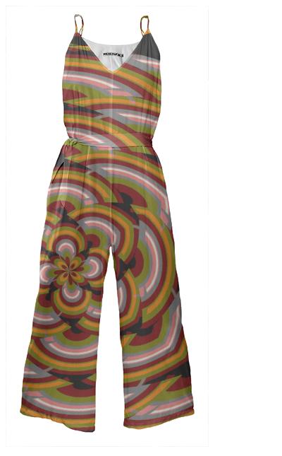 Wide leg jumpsuit with adjustable spaghetti straps invisible side seam zipper and a tie belt.