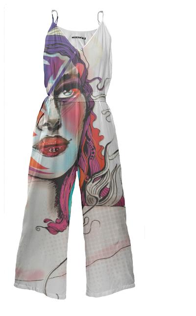 Wide leg jumpsuit with adjustable spaghetti straps invisible side seam zipper and a tie belt.