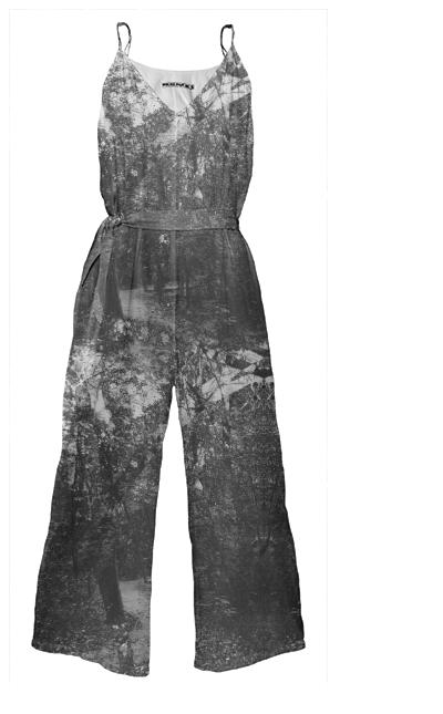 Wide leg jumpsuit with adjustable spaghetti straps invisible side seam zipper and a tie belt.