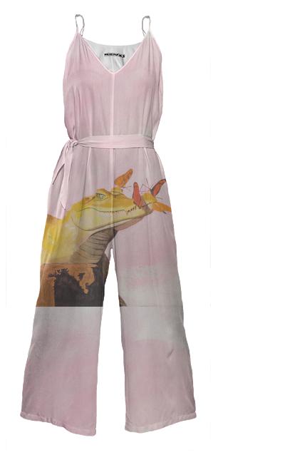 Wide leg jumpsuit with adjustable spaghetti straps invisible side seam zipper and a tie belt.