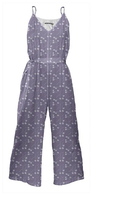 Wide leg jumpsuit with adjustable spaghetti straps invisible side seam zipper and a tie belt.