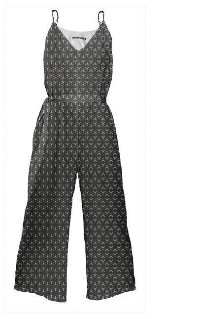 Wide leg jumpsuit with adjustable spaghetti straps invisible side seam zipper and a tie belt.
