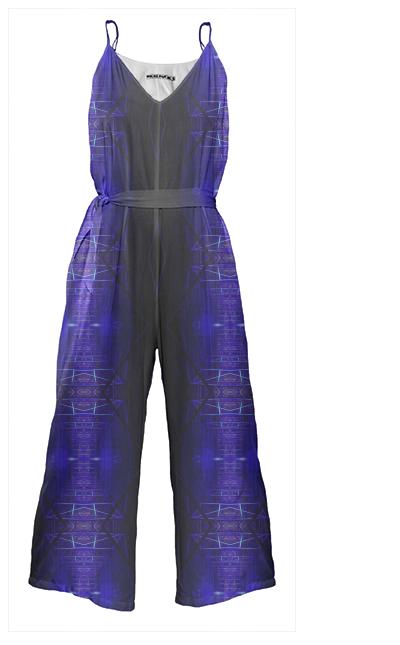 Wide leg jumpsuit with adjustable spaghetti straps invisible side seam zipper and a tie belt.
