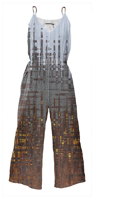 Wide leg jumpsuit with adjustable spaghetti straps invisible side seam zipper and a tie belt.