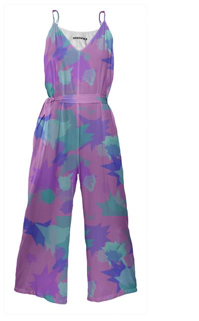 Wide leg jumpsuit with adjustable spaghetti straps invisible side seam zipper and a tie belt.