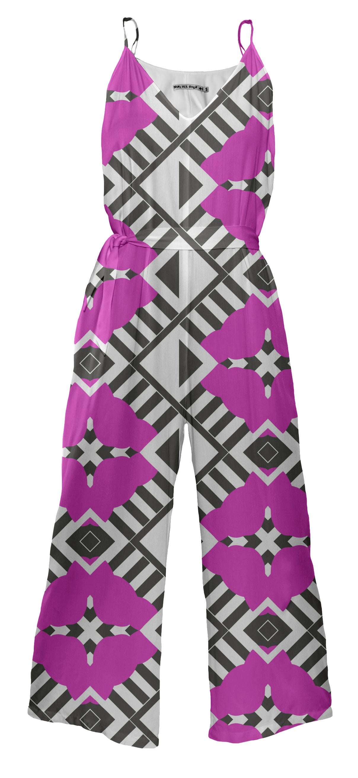 Wide leg jumpsuit with adjustable spaghetti straps invisible side seam zipper and a tie belt.