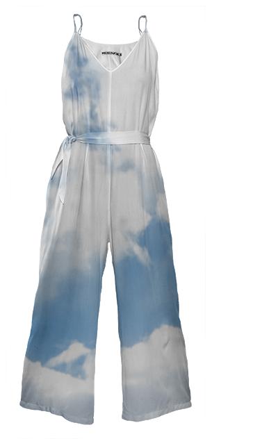 Wide leg jumpsuit with adjustable spaghetti straps invisible side seam zipper and a tie belt.