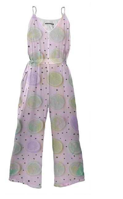 Wide leg jumpsuit with adjustable spaghetti straps invisible side seam zipper and a tie belt.