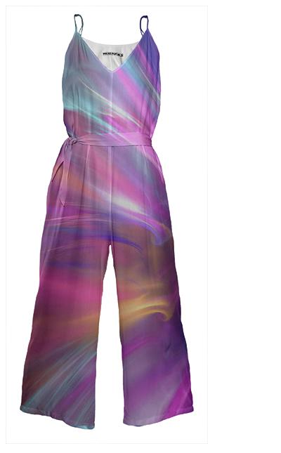 Wide leg jumpsuit with adjustable spaghetti straps invisible side seam zipper and a tie belt.