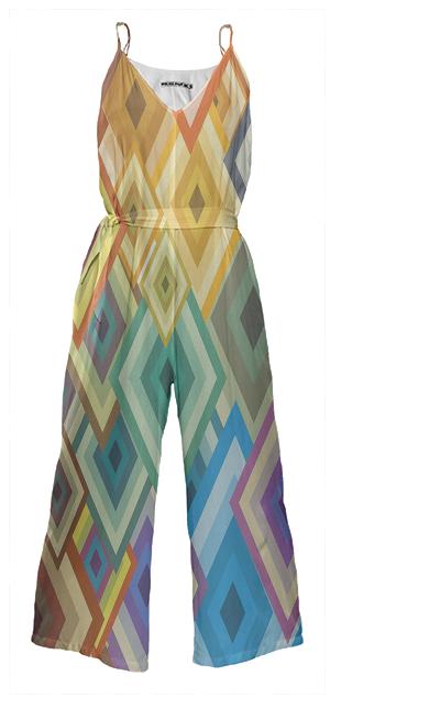 Wide leg jumpsuit with adjustable spaghetti straps invisible side seam zipper and a tie belt.