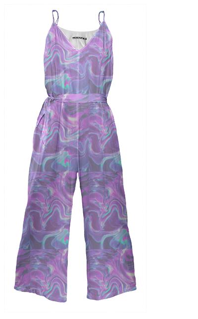 Wide leg jumpsuit with adjustable spaghetti straps invisible side seam zipper and a tie belt.