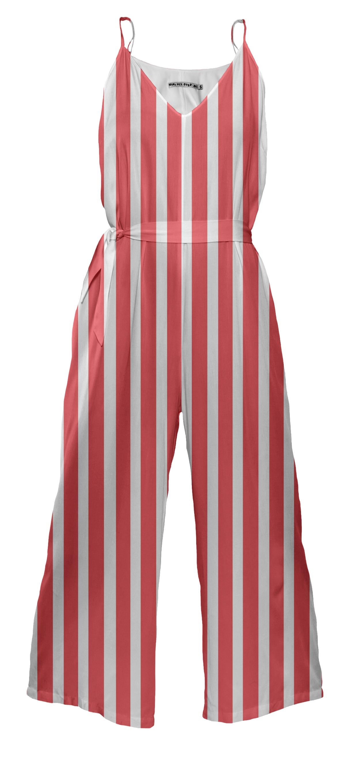 Wide leg jumpsuit with adjustable spaghetti straps invisible side seam zipper and a tie belt.