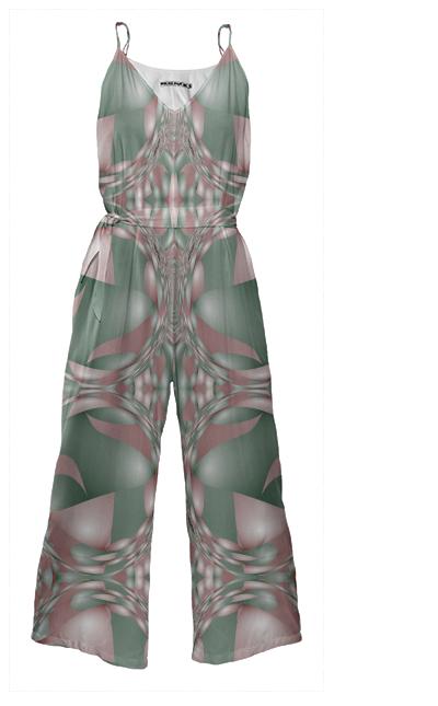 Wide leg jumpsuit with adjustable spaghetti straps invisible side seam zipper and a tie belt.