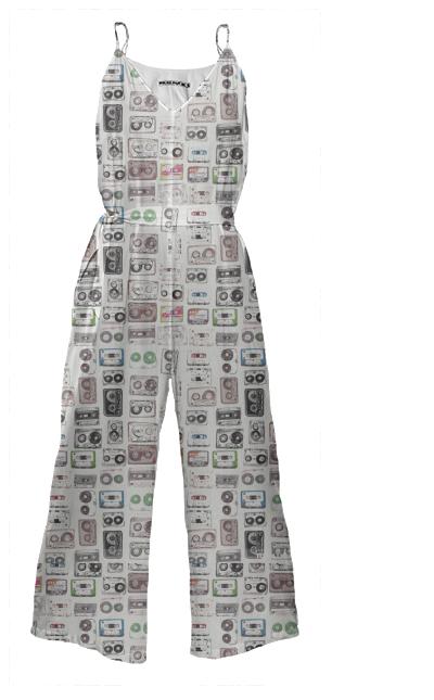 Wide leg jumpsuit with adjustable spaghetti straps invisible side seam zipper and a tie belt.