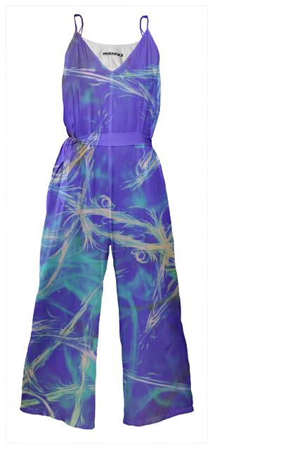 Wide leg jumpsuit with adjustable spaghetti straps invisible side seam zipper and a tie belt.