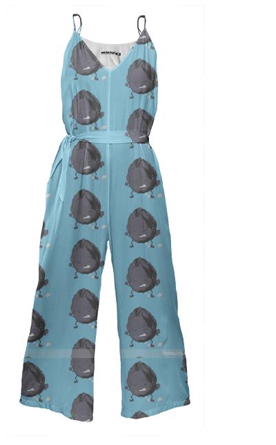 Wide leg jumpsuit with adjustable spaghetti straps invisible side seam zipper and a tie belt.