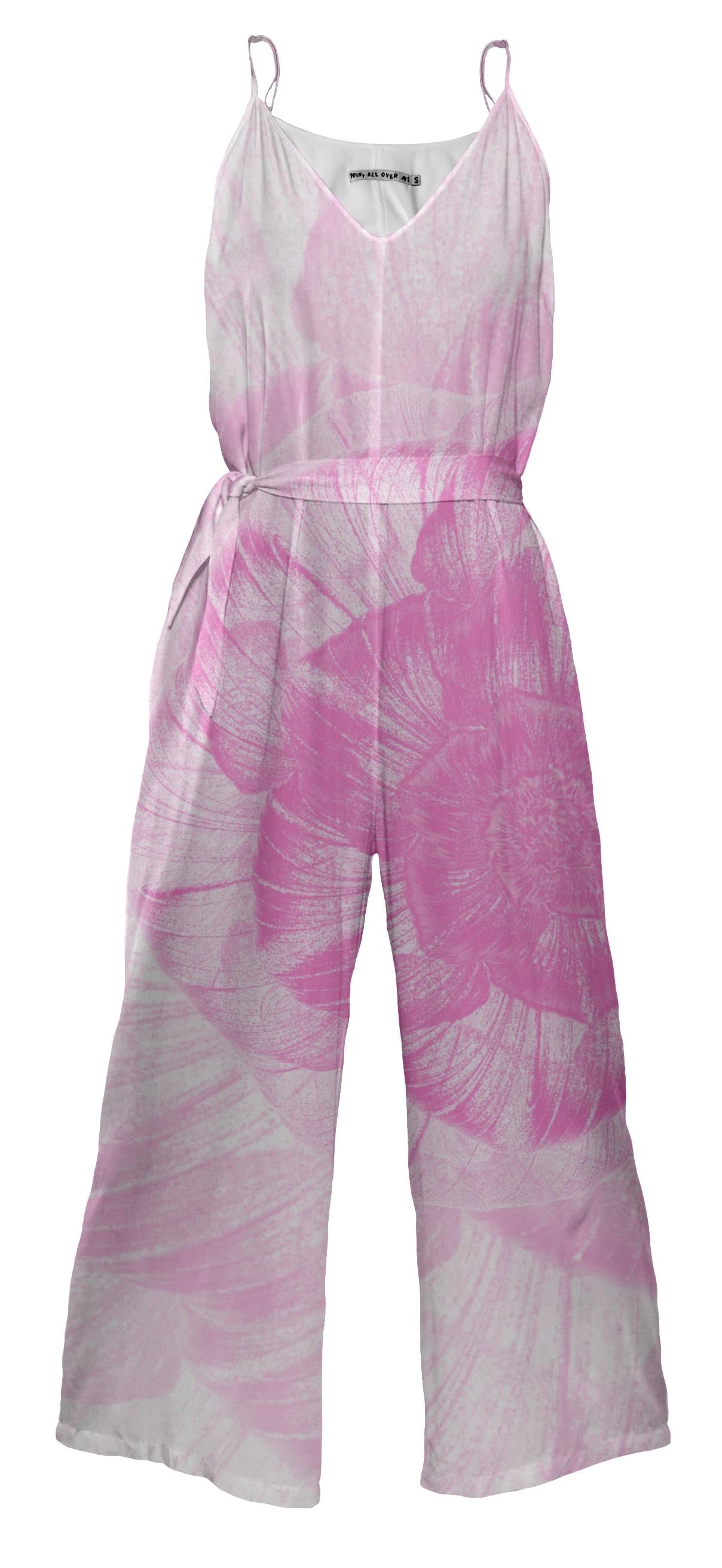Wide leg jumpsuit with adjustable spaghetti straps invisible side seam zipper and a tie belt.