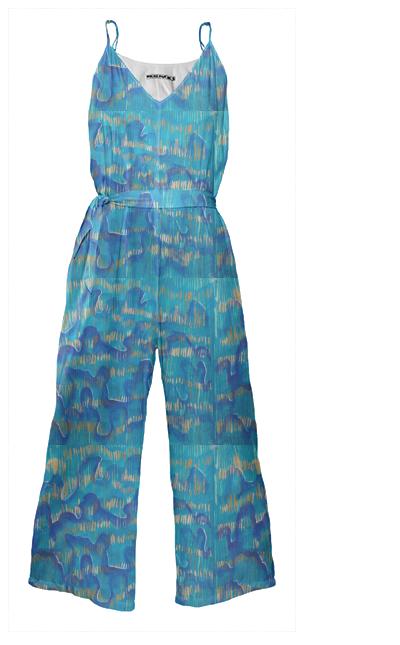 Wide leg jumpsuit with adjustable spaghetti straps invisible side seam zipper and a tie belt.