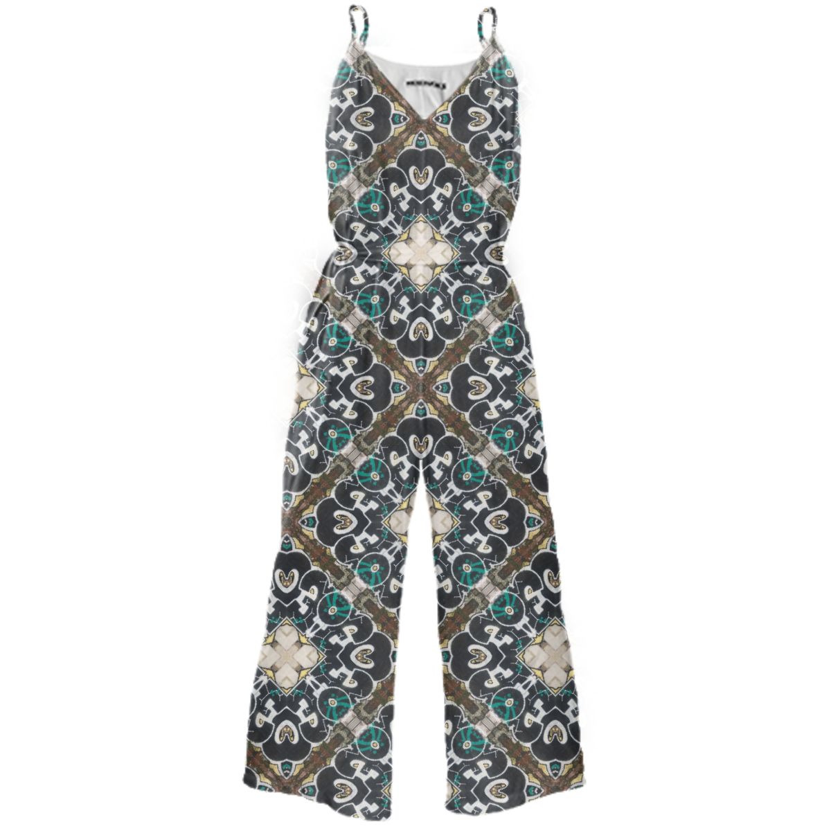 Wide leg jumpsuit with adjustable spaghetti straps invisible side seam zipper and a tie belt.