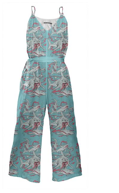 Wide leg jumpsuit with adjustable spaghetti straps invisible side seam zipper and a tie belt.