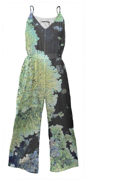 Wide leg jumpsuit with adjustable spaghetti straps invisible side seam zipper and a tie belt.