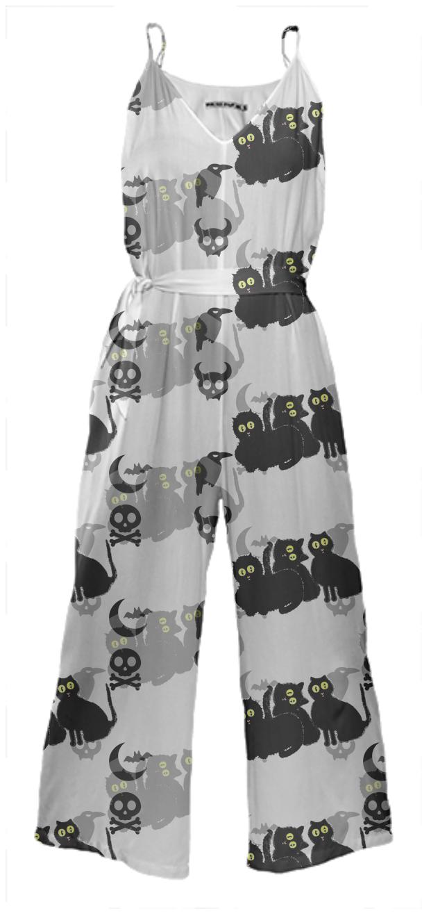 Wide leg jumpsuit with adjustable spaghetti straps invisible side seam zipper and a tie belt.