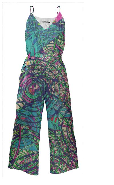 Wide leg jumpsuit with adjustable spaghetti straps invisible side seam zipper and a tie belt.