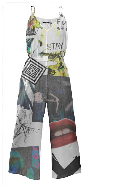 Wide leg jumpsuit with adjustable spaghetti straps invisible side seam zipper and a tie belt.