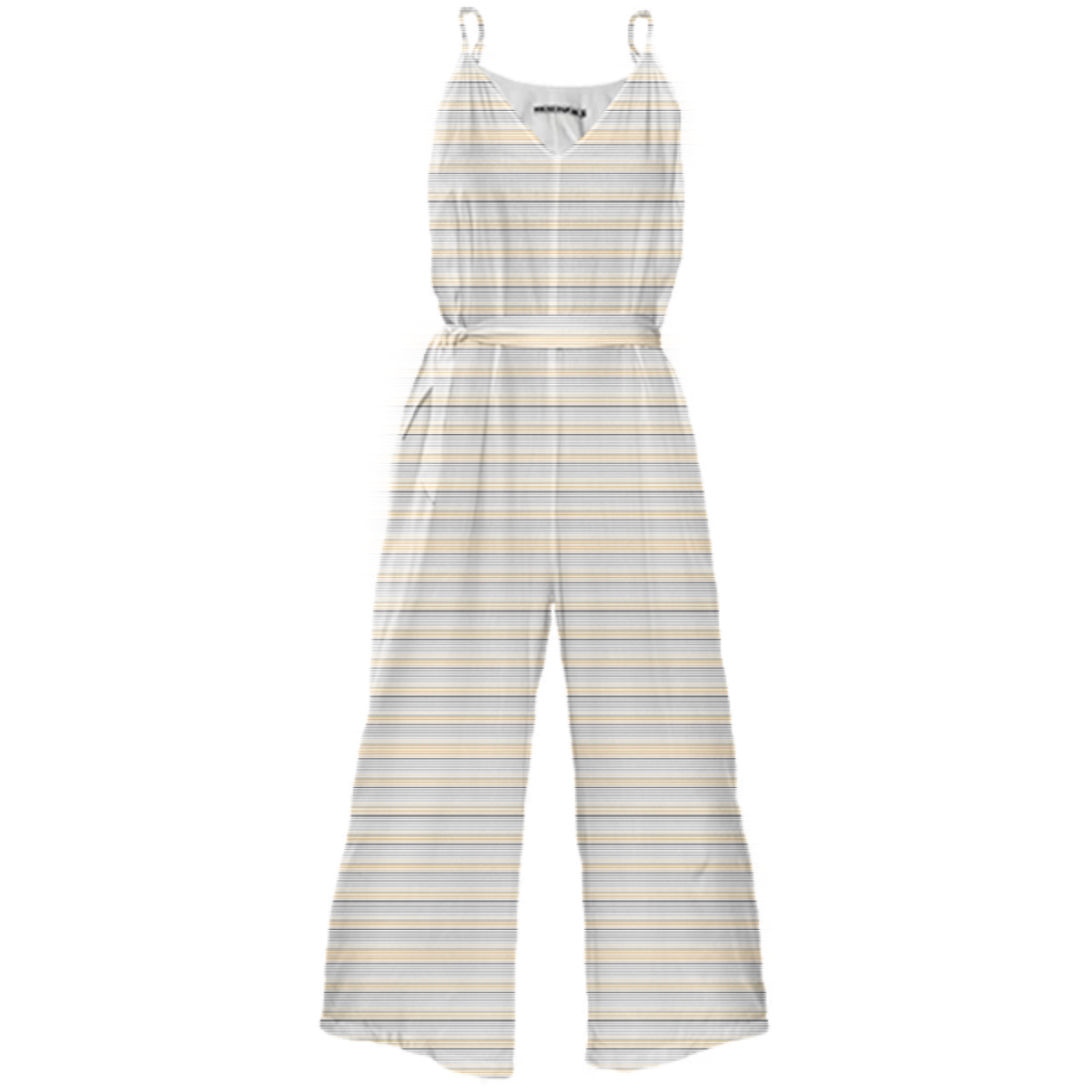 Wide leg jumpsuit with adjustable spaghetti straps invisible side seam zipper and a tie belt.