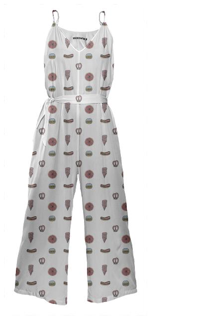 Wide leg jumpsuit with adjustable spaghetti straps invisible side seam zipper and a tie belt.