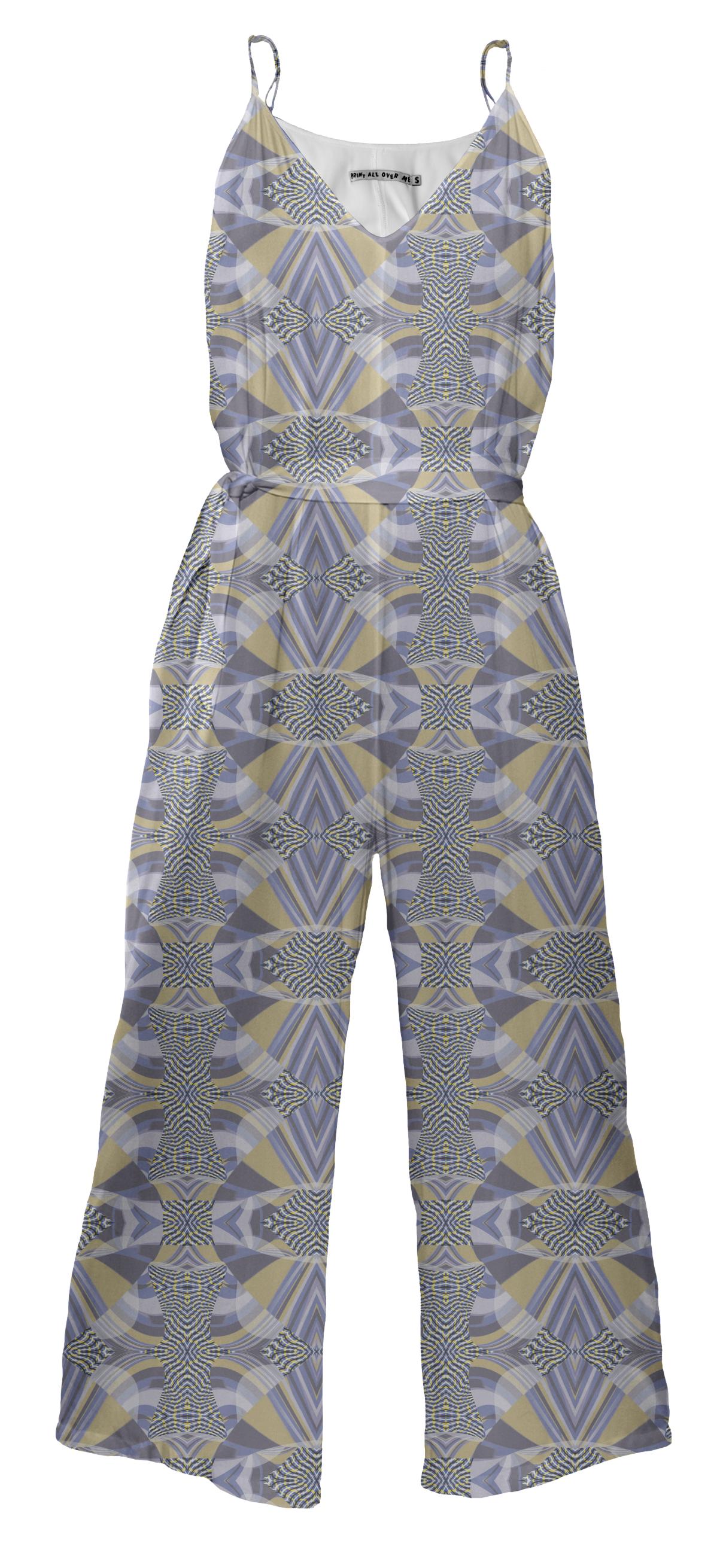 Wide leg jumpsuit with adjustable spaghetti straps invisible side seam zipper and a tie belt.