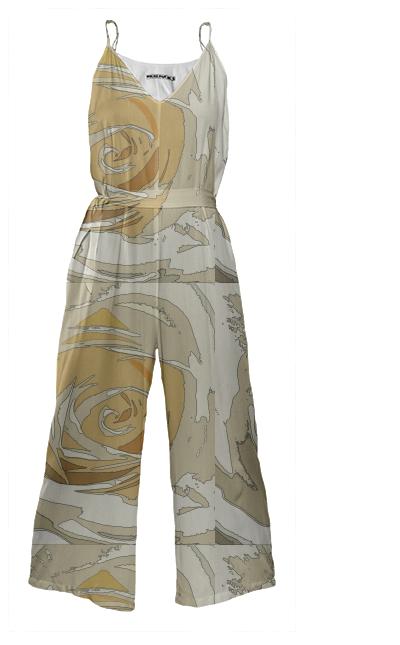 Wide leg jumpsuit with adjustable spaghetti straps invisible side seam zipper and a tie belt.
