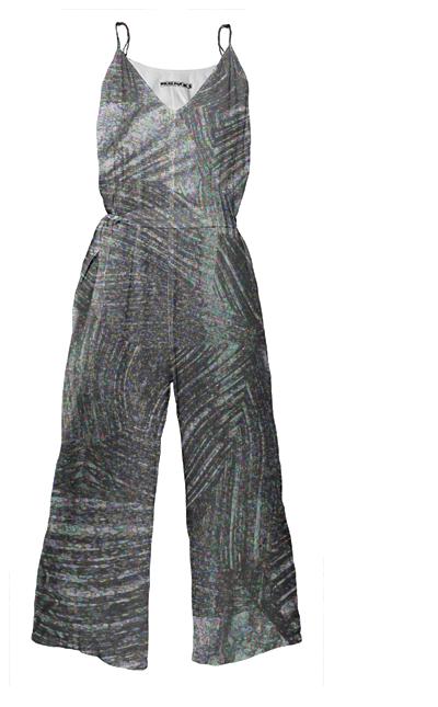 Wide leg jumpsuit with adjustable spaghetti straps invisible side seam zipper and a tie belt.