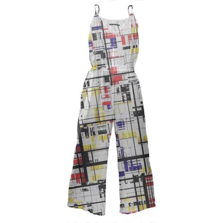 Wide leg jumpsuit with adjustable spaghetti straps invisible side seam zipper and a tie belt.