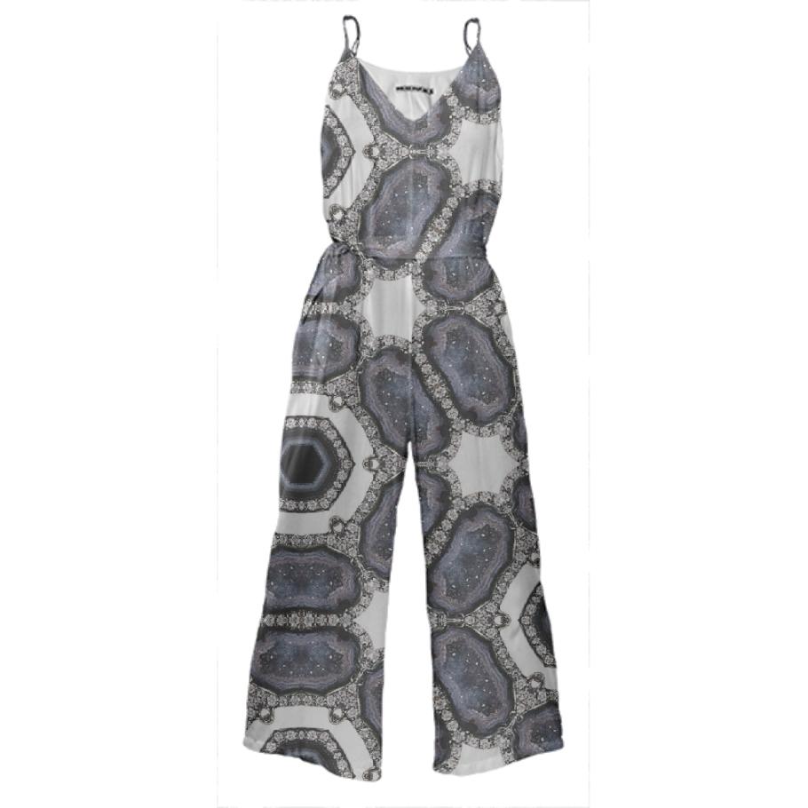 Wide leg jumpsuit with adjustable spaghetti straps invisible side seam zipper and a tie belt.