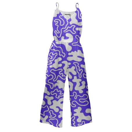 Wide leg jumpsuit with adjustable spaghetti straps invisible side seam zipper and a tie belt.